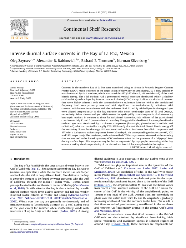 Pdf Intense Diurnal Surface Currents In The Bay Of La Paz Mexico Oleg Zaytsev Academia Edu