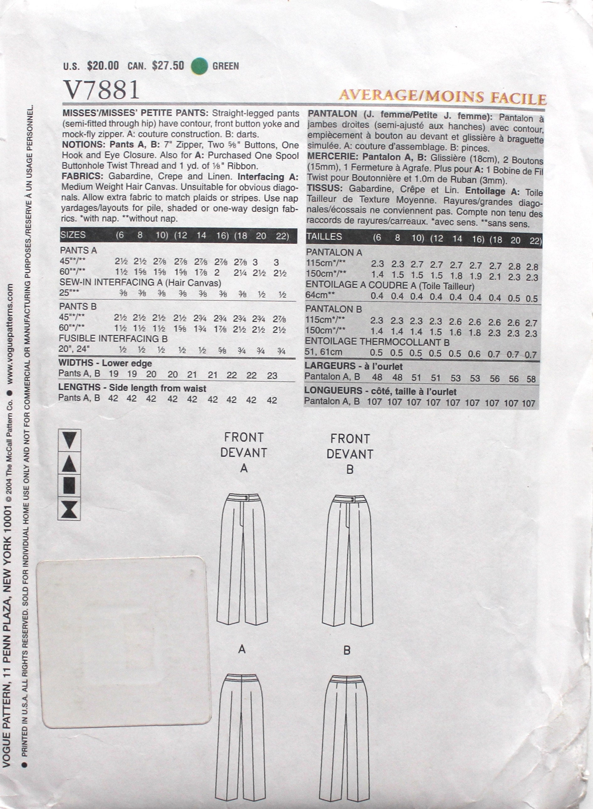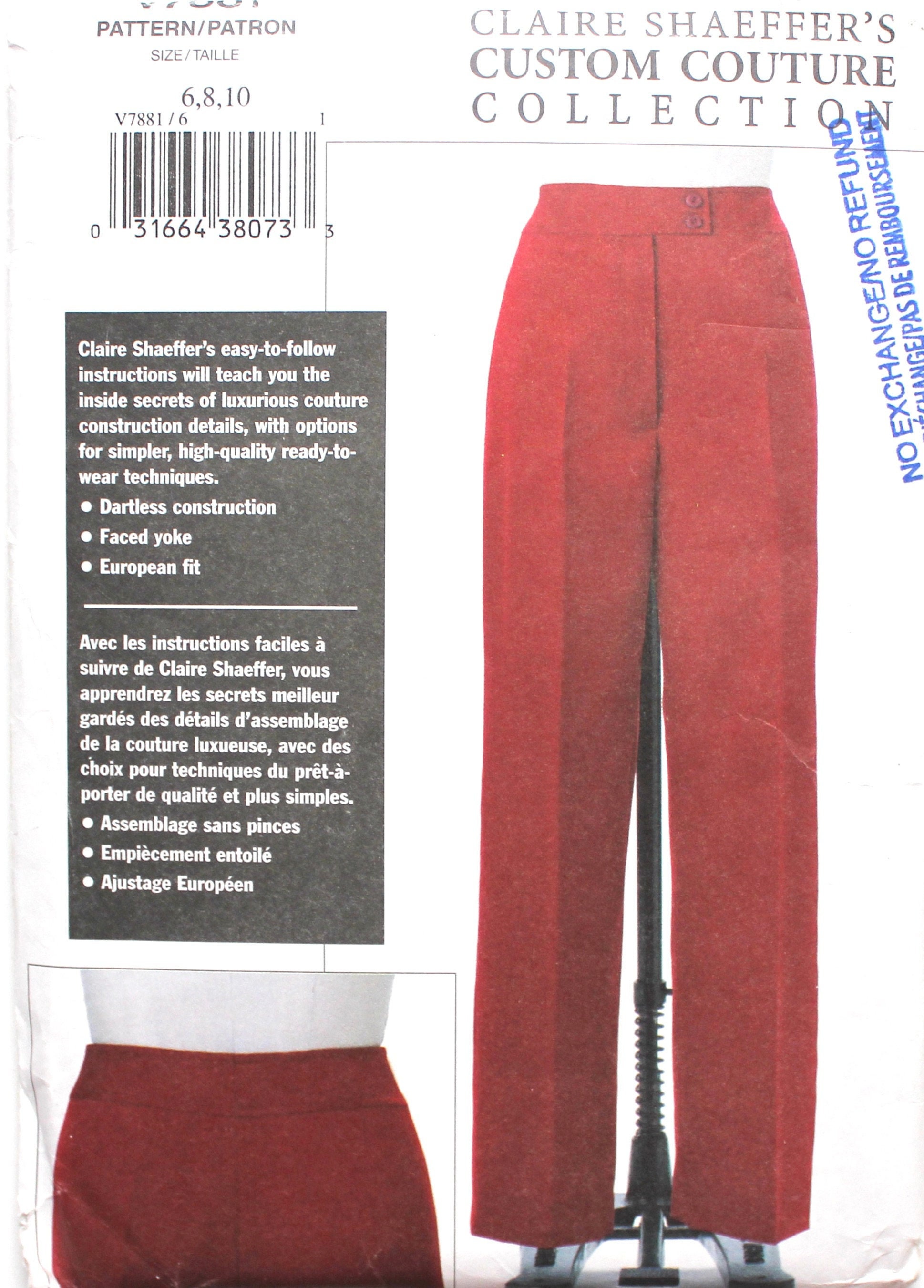 Uncut Custom Couture Pants Pattern Waist 23 25 Sewing Pattern Etsy